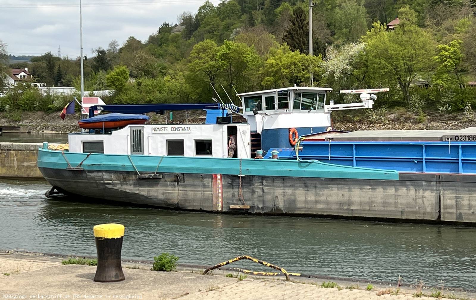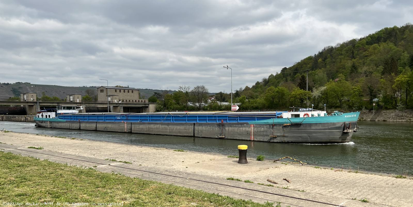 Auf seiner Neckarfahrt im April 2022 hat es die Karl Epple Schiffs-Umschlaganlage Benningen mit Sand beliefert und fuhr dann wieder unbeladen neckarabwärts.