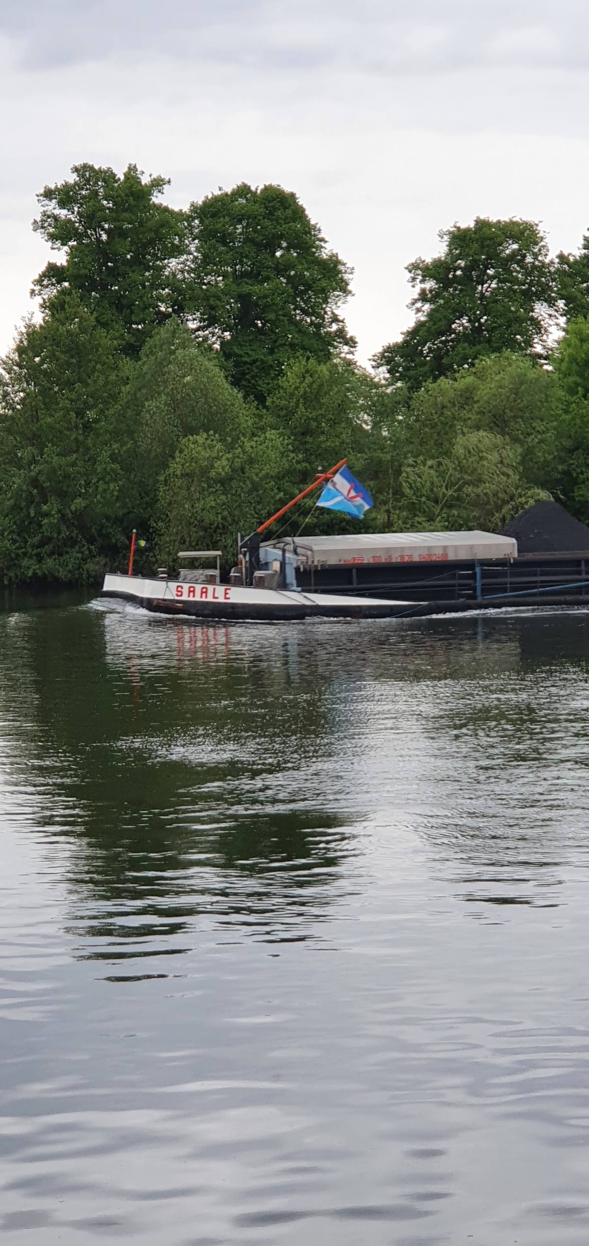 Mit einer Länge von stolzen 100 Metern und einer Breite von 9 Metern gehört sie schon zu den großen im Neckar. Ihre Tragkraft ist mit 1664 Tonnen angegeben.Für den nötigen Vortrieb sorgt ein 790 PS starker Dieselmotor von Deutz.